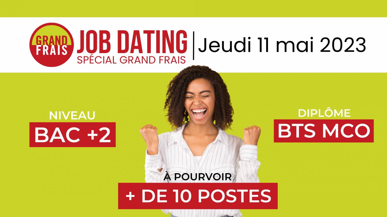 Ce job dating se tiendra le jeudi 11 mai 2023 de 14:00 à 17:00 à l'IFP Bordeaux Business School, l'occasion idéale pour rencontrer les responsables des ressources humaines de Grand Frais et décrocher votre futur emploi en alternance.